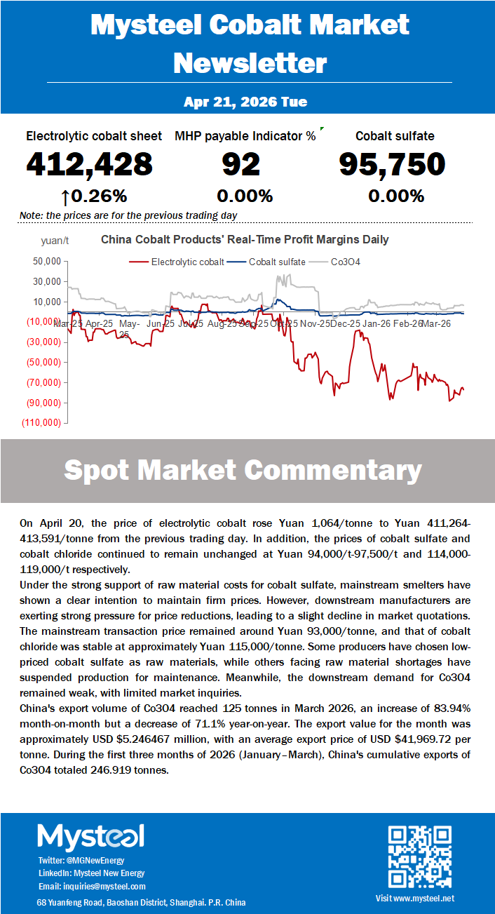 China Cobalt Market Price & Cost Review Weekly 20260420