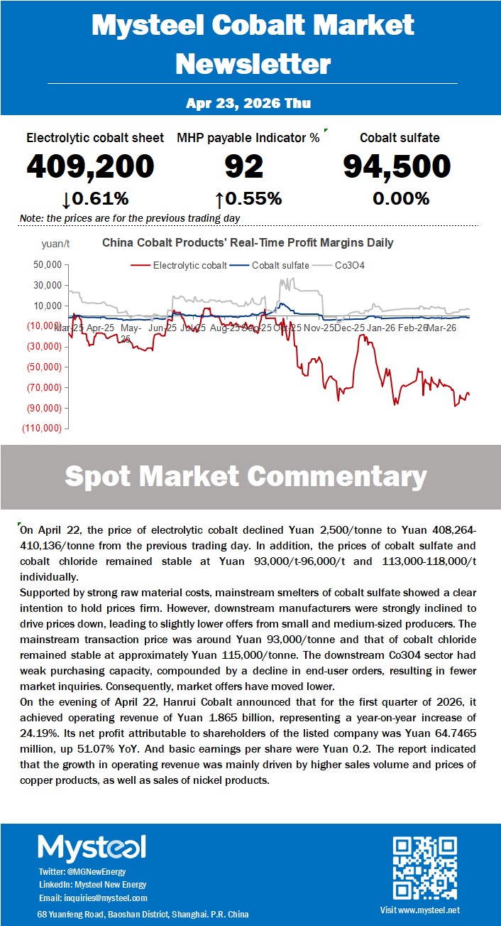 China Cobalt Market Price & Cost Review Weekly 20260420